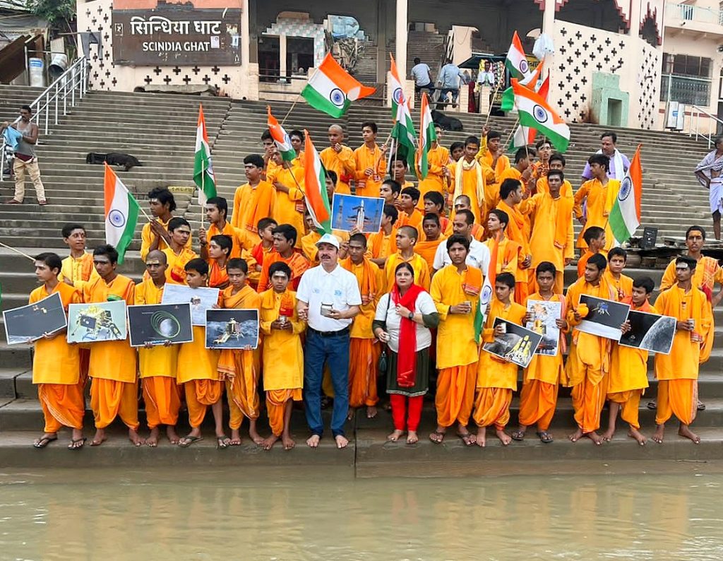 वाराणसी- पूरे विश्व की निगाहे भारत के चंद्रयान -3 के लैंडिंग को लेकर बनी हुई है। भारत चंद्रमा पर एक नया इतिहास रचने के करीब पहुंच चुका है। ऐसे में भारत के चंद्रयान -3 की सफल लैंडिंग के लिए देशभर में प्रार्थना किया जा रहा है। धर्म की नगरी काशी में भगवान हनुमान और मां गंगा के साथ बाबा श्री काशी विश्वनाथ से काशी के लोगों ने चंद्रयान -3 की सफल लैंडिंग के लिए प्रार्थना किया।