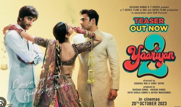 गुरुवार को टी सीरीज ने यारियां 2 का टीजर रिलीज कर दिया है, जिसमें ये दिखाया गया है कि एक लड़की के इर्द गिर्द दो लड़कों की कहानी घूमती रहती है। इस टीजर से ये अनुमान आसानी से लगाया जा सकता है कि इस बार यारियां 2 की कहानी लव ट्राइंगल पर भी आधारित हो सकती है। मेकर्स के द्वारा दी गई जानकारी के अनुसार यह फिल्म 20 अक्टूबर 2023 को सिनेमाघरों में रिलीज होगी।
